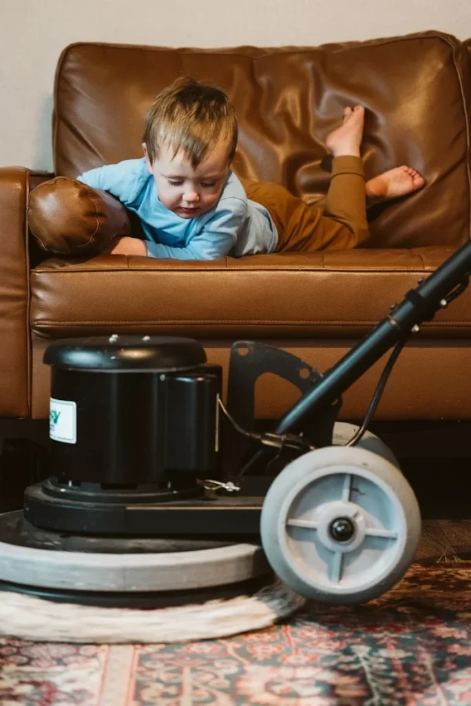 Using our professional carpet cleaning machine, we first scrub the carpet with a specialized carpet brush to help penetrate the cleaning solution deep into the fibers.